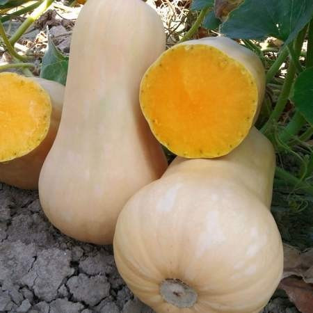 Középkorai, nagy hozamú, jól tárolható butternut típusú sütőtök.