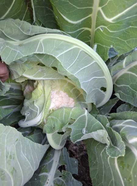 hófehér színű, 1,3-2 kg-os fejeket képez. A szépen csavarodó levelek tökéletesen fedik a rózsát